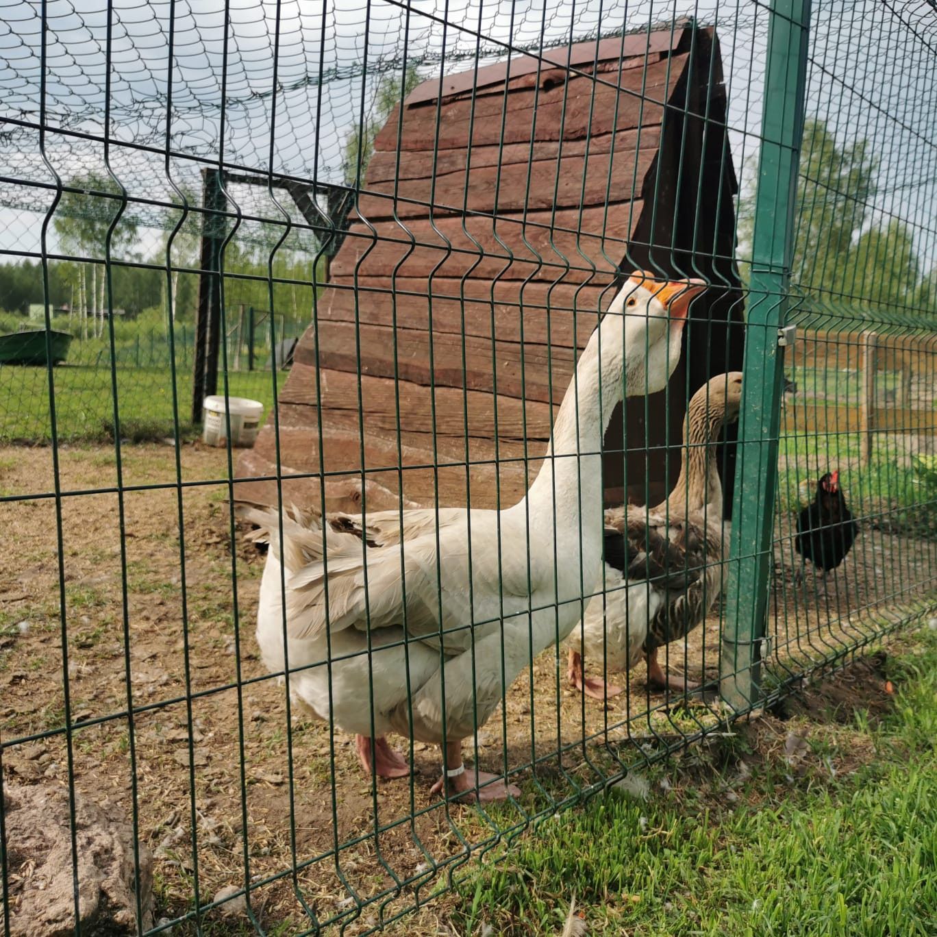 Zoodārzā iespējams iegādāties arī barību, ko dot dzīvniekiem. Kad graudu spainītis bija rokā, varēja doties tālāk. Uzmanību piesaistīja skaļi klaigājošās zosis.