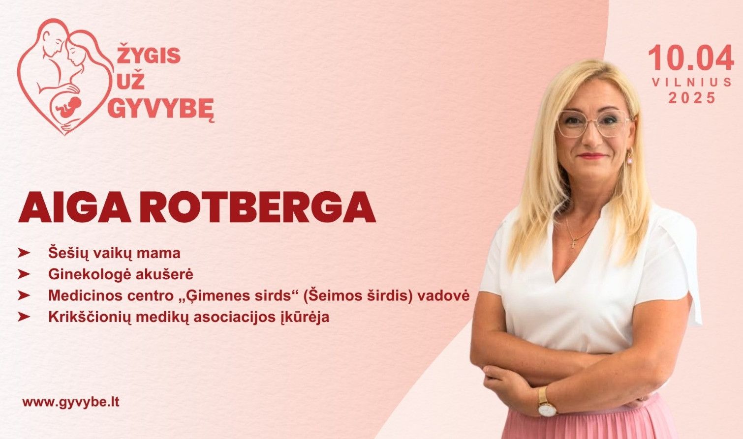 "Es biju ginekologs, kas kādreiz veica abortus. Vienā brīdī es sapratu, ka to vairāk nedarīšu. Šis ir tāds laiks, kad mums ir jāparāda arī publiski un atklāti, par ko mēs esam. Mēs to nekaunāmies," tā uzsver sešu bērnu mamma, ginekoloģe un Kristīgo mediķu biedrības dibinātāja Aiga Rotberga. Viņa šajā gājienā arī teiks īpašu uzrunu kā Latvijas pārstāve.
