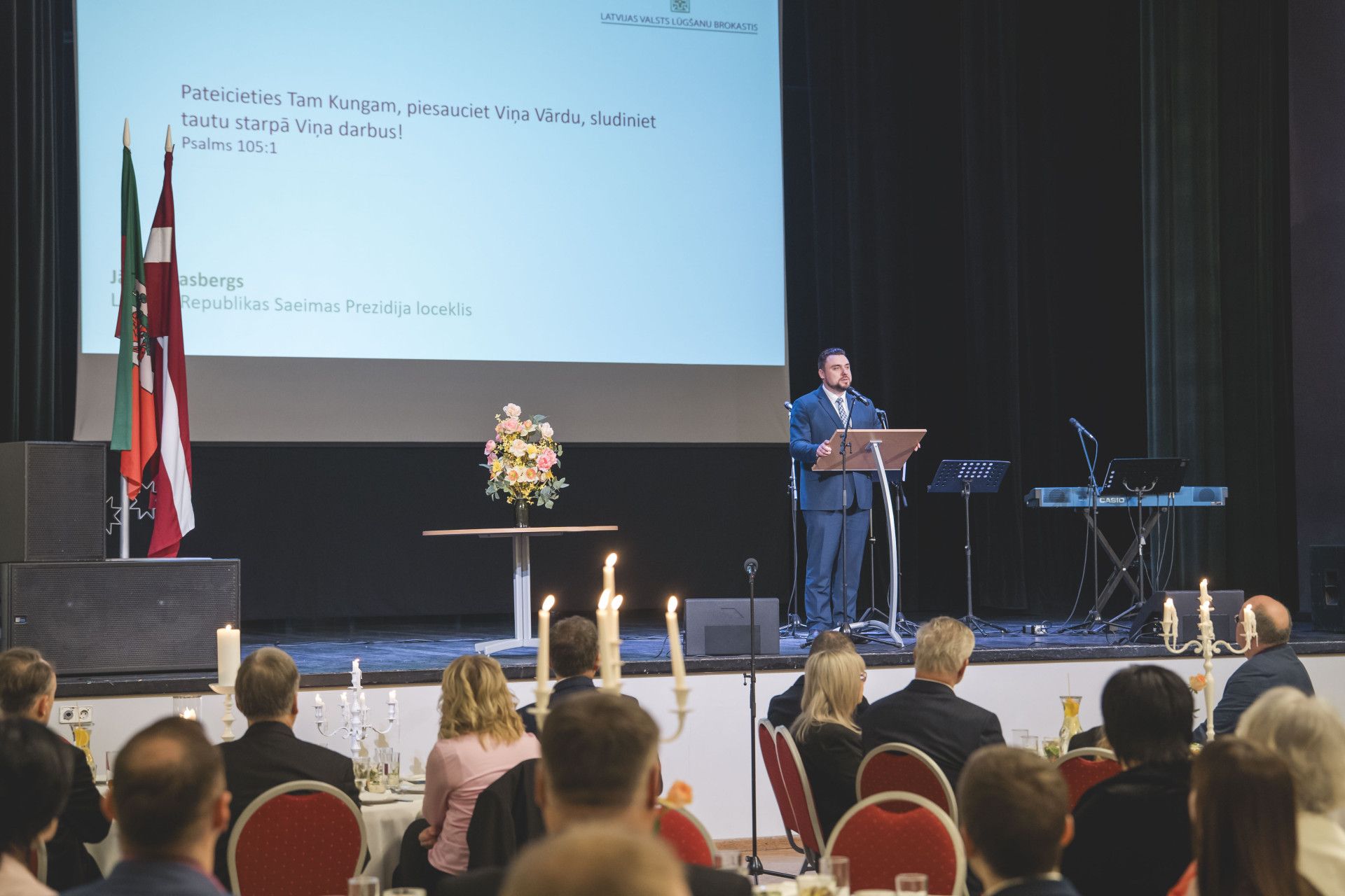 Svētku uzrunu teica arī 14. Saeimas Prezidija loceklis Jānis Grasbergs (NA), kurš arīdzan uzsvēra, cik Latvijai ir nozīmīgi – spēt sanākt kopā ar citiem atšķirīgi domājošajiem un vienoti kopā paskatīties pāri savām prāta, konfesijas, politiskām un pat konkurences robežām.