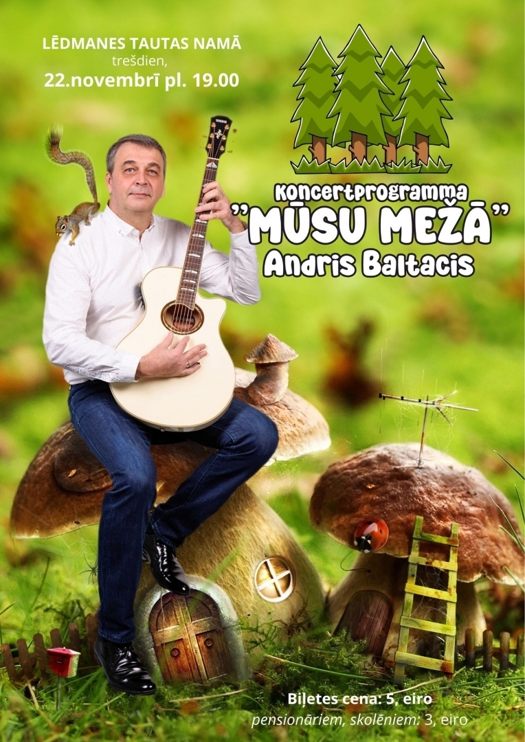 22. novembrī plkst. 19.00 Lēdmanes Tautas namā uzstāsies Andris Baltacis ar muzikāli humoristisku koncertprogrammu “Mūsu mežā”.