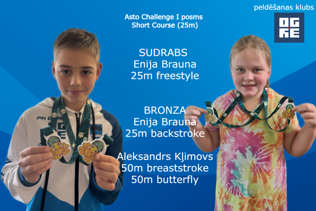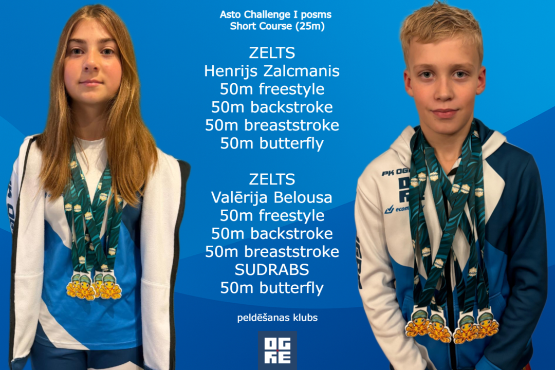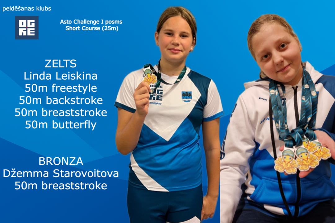 2. novembrī Inčukalnā notika peldēšanas sacensību “Asto Challenge” pirmais posms, kurā PK “Ogre” jaunie sportisti izcīnīja 26 dažāda kaluma medaļas, kļūstot par kopvērtējuma uzvarētājiem 16 klubu konkurencē.